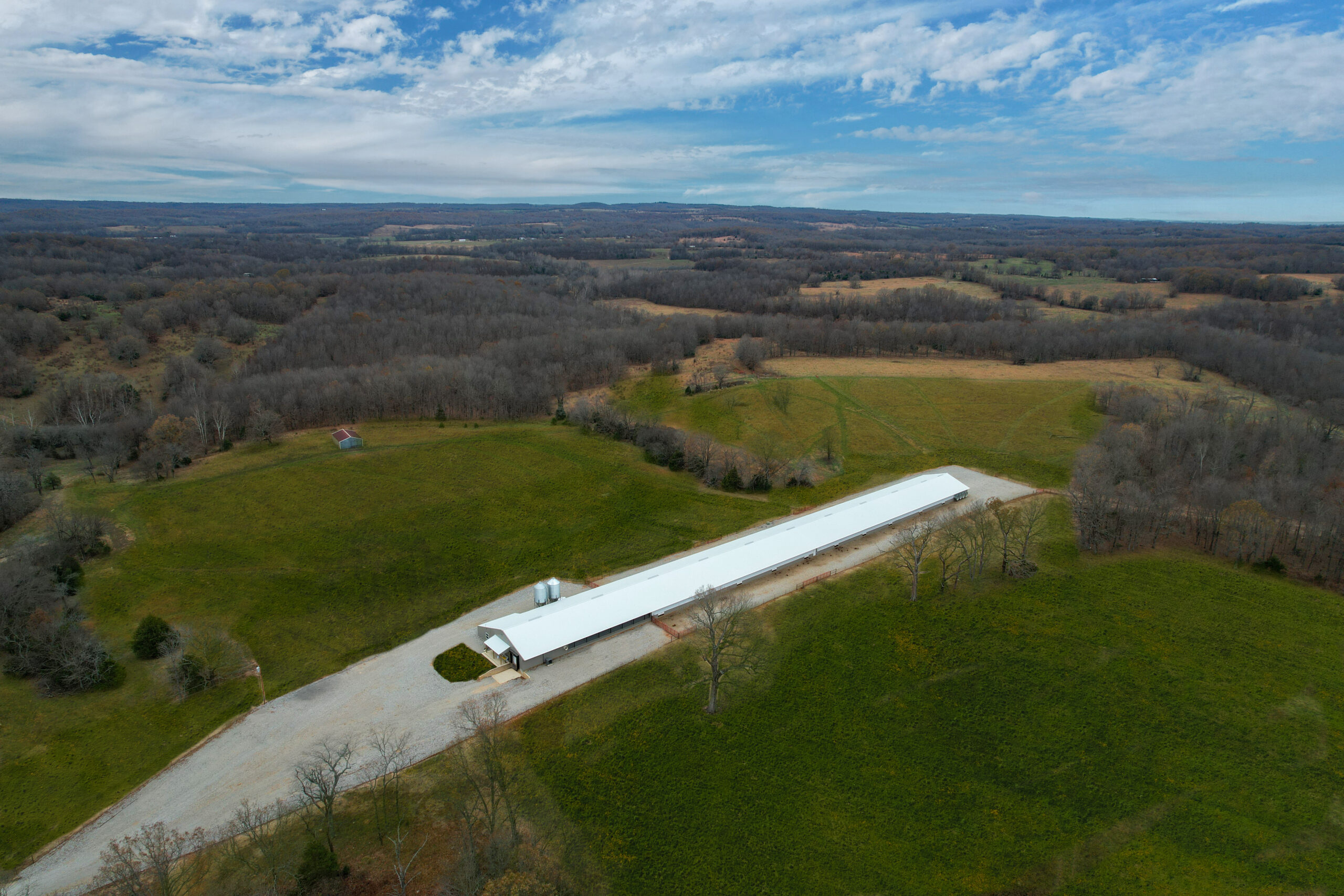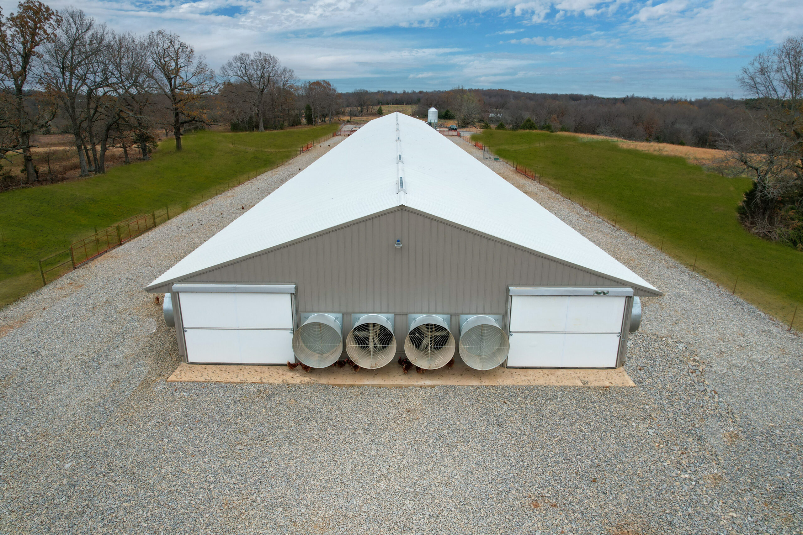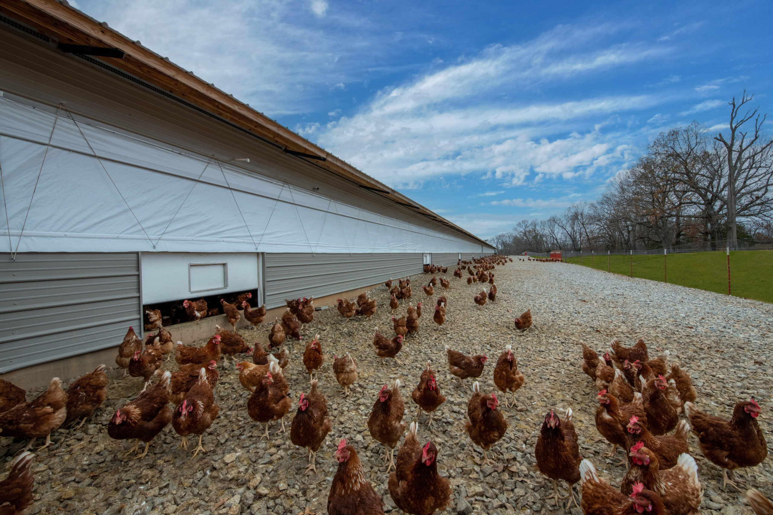 One of the reasons Jason chose Hostetler Poultry to build his new layer barn was the durability of our steel truss system and our turnkey production process. Rated to hold 20,500 layers, this 50’X540’ project also includes a front porch, office space, and egg and cooler rooms. Hostetler provided equipment installation as well as design and construction services. Hostetler Poultry builds pastured chicken house facilities throughout Missouri and beyond.